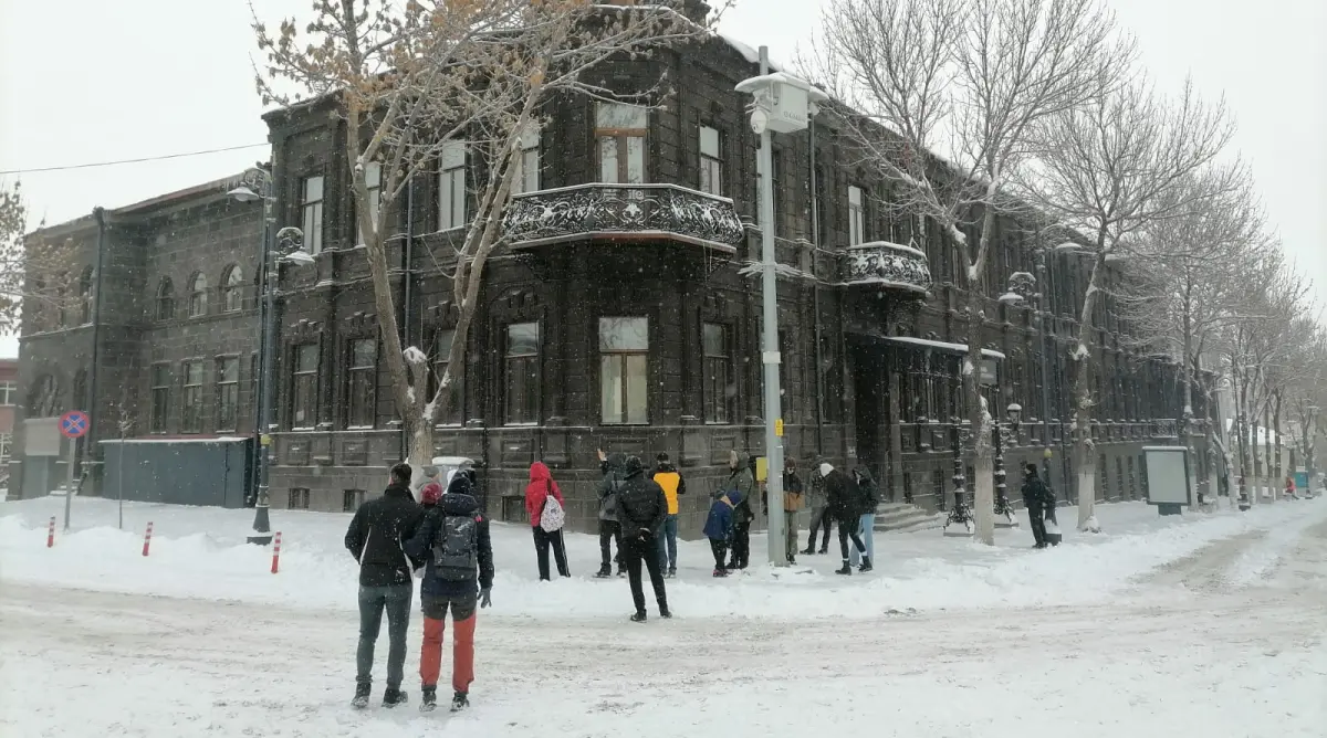 Kars'ta kar yağışıyla kent merkezi beyaza büründü.
