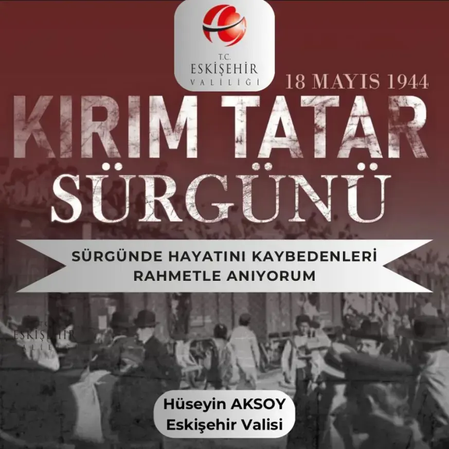 Eskişehir Valisi Hüseyin Aksoy, 18 Mayıs 1944 tarihinde gerçekleşen Kırım Tatar Sürgünü’nün yıl dönümü nedeniyle kişisel sosyal medya hesabından paylaşım yaptı. Kırım Tatar Türkleri’nin acısını paylaştığını ve sürgünde hayatını kaybeden soydaşları rahmetle andığını belirten Vali Aksoy’un paylaşımında ise şu ifadelere yer verdi: