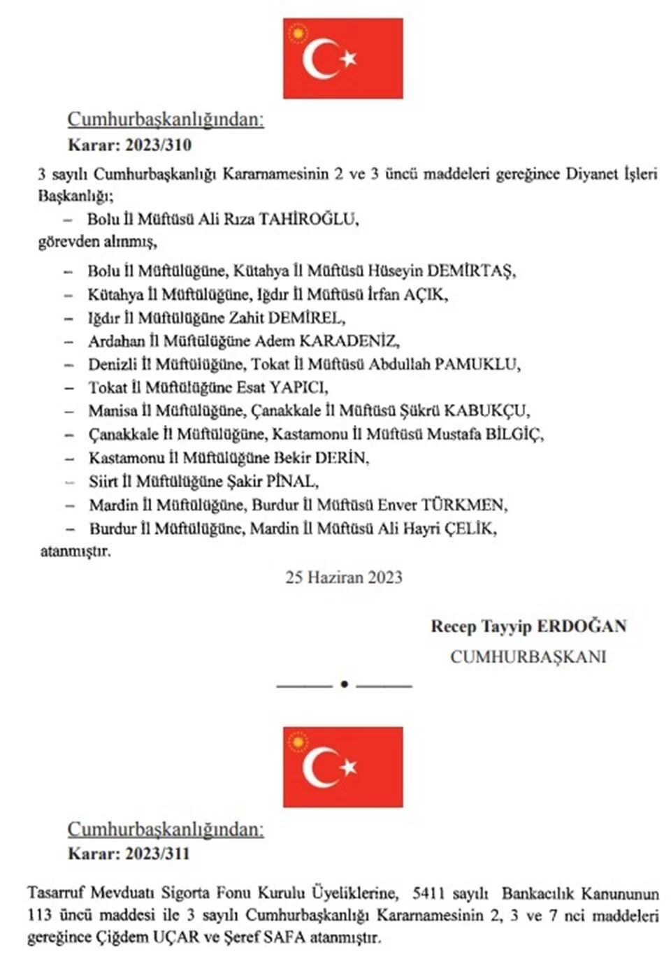 Cumhurbaşkanı Recep Tayyip Erdoğan'ın imzasıyla yeni atama kararları Resmi Gazete'de yayımlandı. 3 deprem iline vali atamaları yapılırken, Eskişehir Valisi Erol Ayyıldız da Emniyet Genel Müdürü olarak atandı.