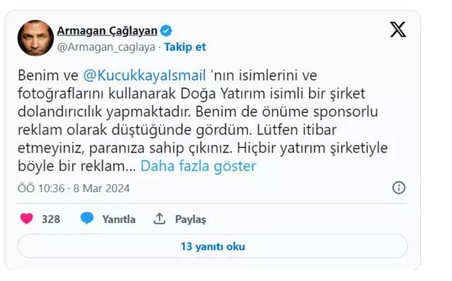 Armağan Çağlayan'ın bu uyarısı oldukça önemlidir. Dolandırıcılık girişimlerine karşı dikkatli olmak herkesin görevidir. Özellikle de bir ismin adıyla yapılan bu tür dolandırıcılık girişimleri, insanları kolaylıkla kandırabilir.