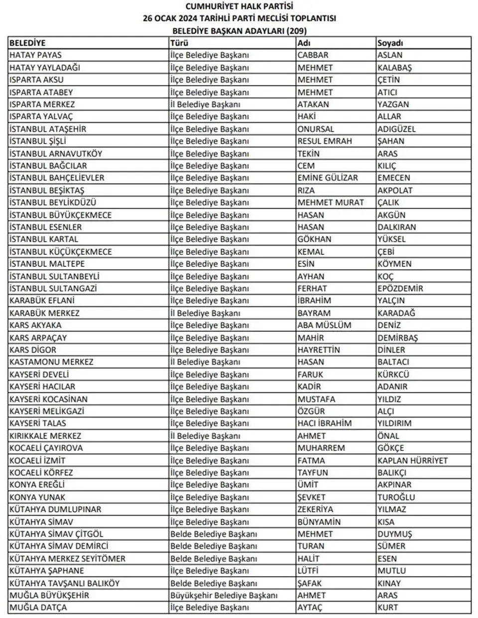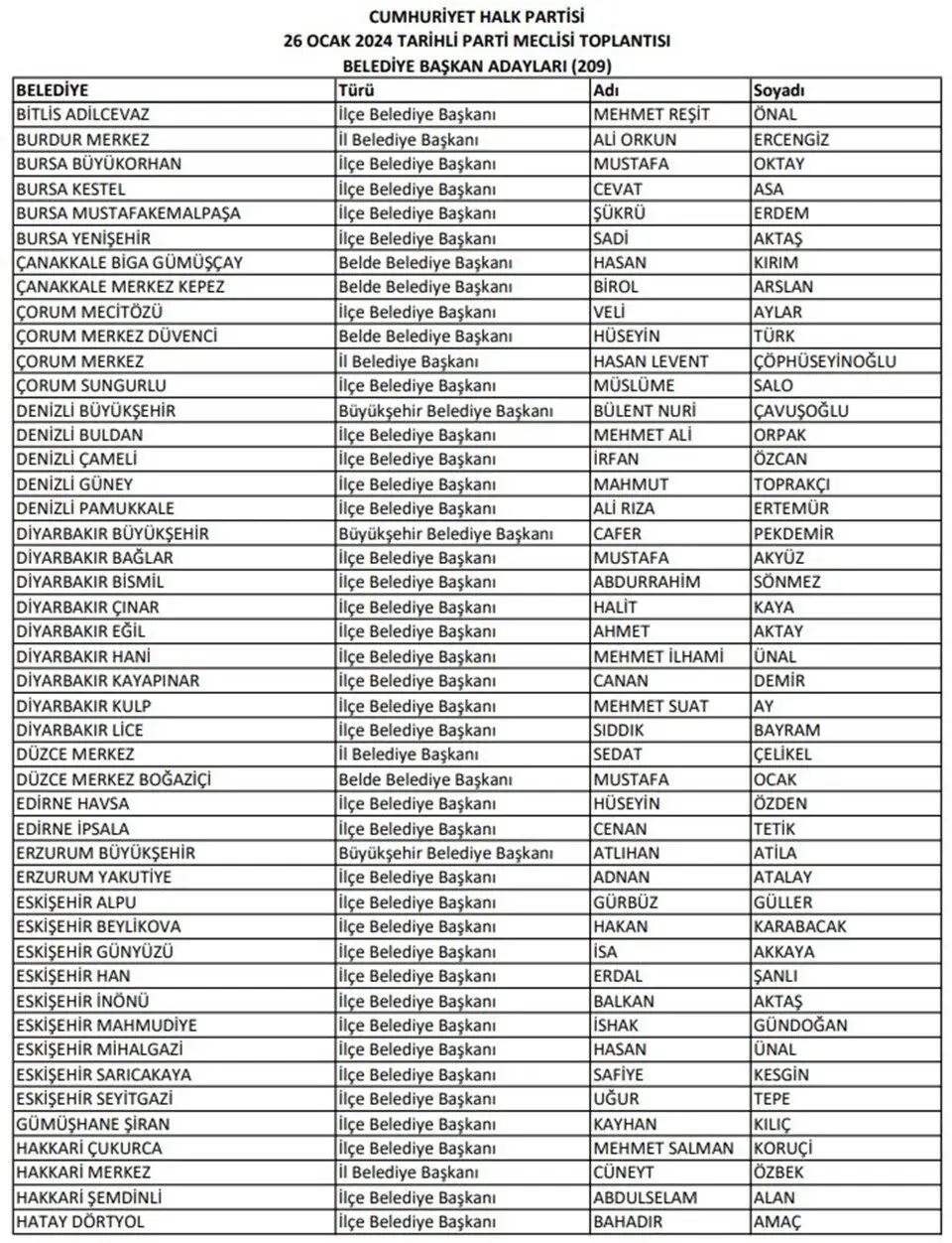CHP'de Merkez Yürütme Kurulu ve Parti Meclisi art arda toplandı. Toplantılarda İstanbul'daki kritik ilçeler dahil 209 belediye başkan adayı belirlendi.