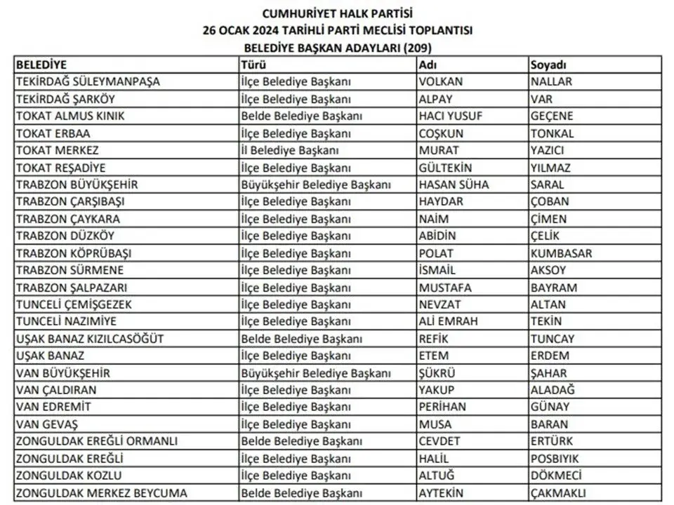 CHP'nin İstanbul ilçe belediye başkan adayları: