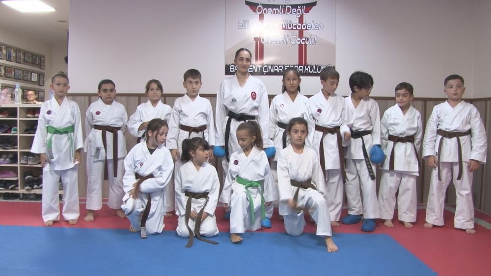 Avrupa Karate Şampiyonası'nda 1 altın, 2 bronz madalya alan milli sporcu Sena Kızılaslan, minik karatecilerle antrenmanlar yaparak onlara örnek oluyor.
