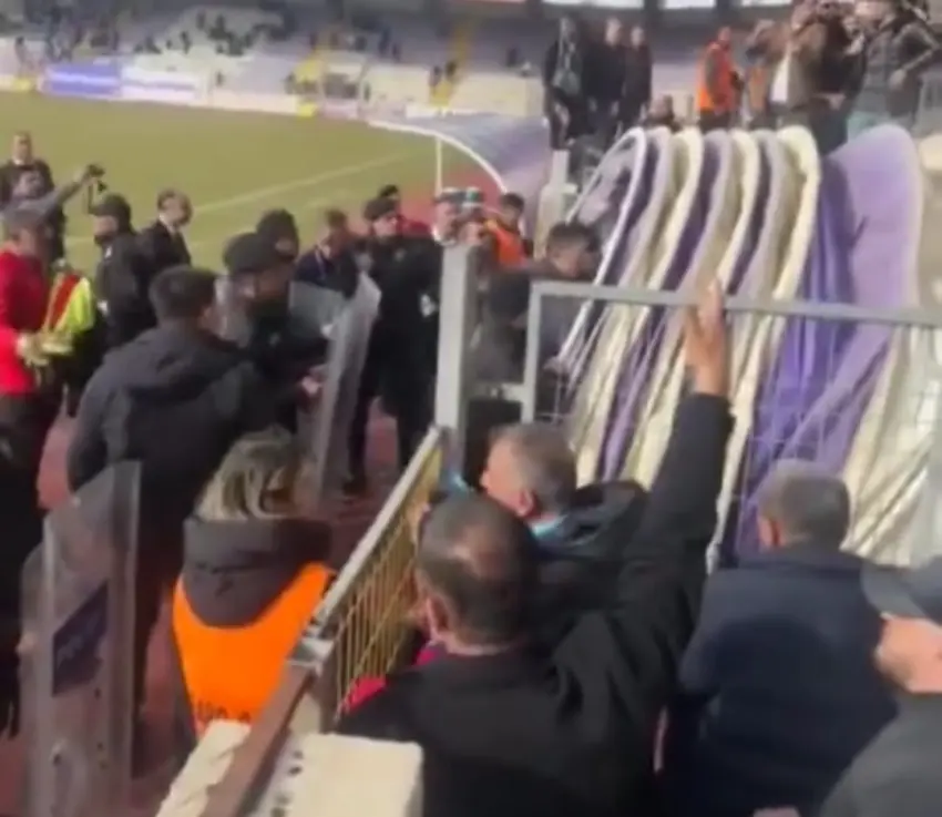 Stadyumda görevli özel güvenlik amirinin futbolculara sözlü ve fiziki saldırıda bulunması büyük tepki çekti.