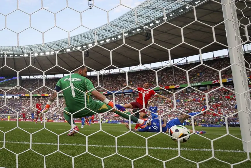 Almanya'nın başkenti Berlin'deki Olimpiyat Stadı'nda oynanan maçın ilk yarısında İsviçre, büyük ölçüde oyunu domine eden taraf oldu. İsviçreliler, yüzde 70'leri aşan topla oynama yüzdesiyle İtalya kalesinde tehlikeli ataklar oluşturmaya başladı. İlk ciddi pozisyonda ise Embolo, 24. dakikada karşı karşıya kaldığı Donnarumma'yı geçemedi. Kırmızı beyazlılar Aradığı golü 37. dakikada Freuler ile bularak soyunma odasına 1-0 önde gitti.