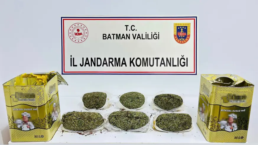 Batman Valiliğince yapılan açıklamada, "İl Jandarma Komutanlığı ekiplerince uyuşturucu ile mücadele dahilinde yapılan çalışmada Pınarbaşı Mahallesi'nde M.R. ve O.A. isimli şüpheli şahıslara ait araçta yapılan aramada 2 adet bitkisel yağ tenekesi içerisinde streç filmle sarılarak gizlenmiş 6 parça halinde toplam 5 kilo 800 gram kubar esrar ele geçirilmiştir.