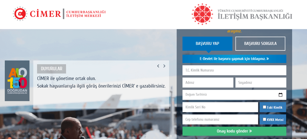 - CİMER’in web sitesine (www.cimer.gov.tr) ya da E-Devlet üzerinden ‘Cimer Başvuru’ hizmetine erişebilirsiniz.