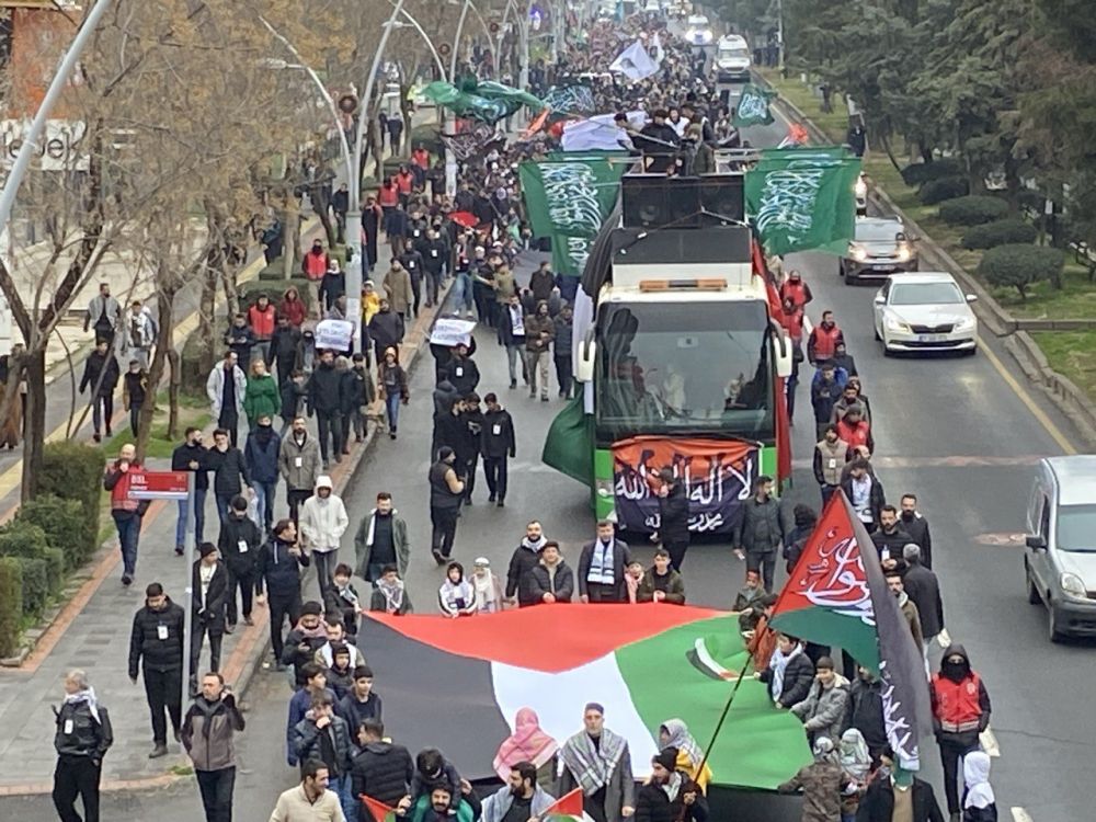 Batman'da, İsrail’in Gazze’ye yönelik saldırılarının protesto edilmesi amacıyla İslami sivil toplum kuruluşları öncülüğünde Atatürk Parkı'nda toplanan grup, Gülistan Caddesi'ne kadar yürüdü. Ellerinde Filistin bayrakları taşıyan katılımcılar, İsrail aleyhine slogan attı.