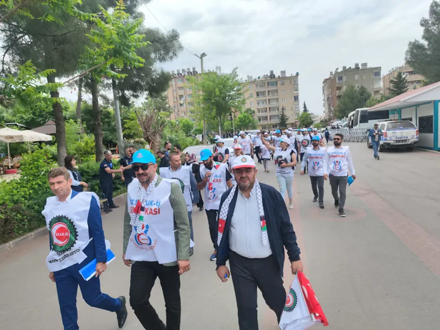 Basın açıklamasını okuyan HAK-İŞ Mardin İl Başkanı Aziz Adıbelli, birlik, dayanışma ve mücadele için 81 ilde alanlarda olduklarını belirtti.