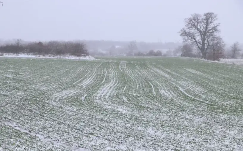 Yazın bölgede etkili olan kuraklığın ardından buğday tarlalarının karla kaplanması çiftçi tarafından sevinçle karşılandı.