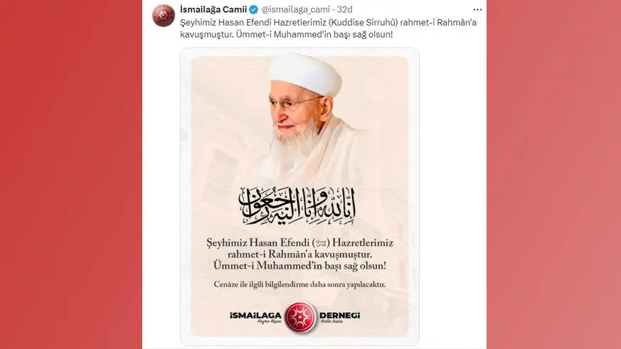 İsmailağa Cemaati lideri Hasan Kılıç, 94 yaşında hayatını kaybetti.