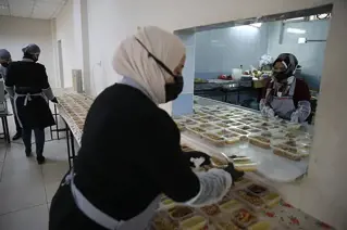 Özenle paketlenen yemekler, ailenin birey sayısına göre kadınlar tarafından evlere ulaştırılıyor.