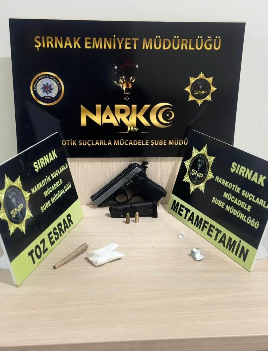 Şırnak ve Habur Sınır Kapısı'nda kolluk kuvvetlerince yapılan operasyonlarda, 201 gram eroin4,87 gram metamfetamin, 2,89 gram esrar, 3 adet bong,1 adet tabanca, 1 adet şarjör, 2 adet fişek, 6461 adet emtia (makyaj malzemesi, elektrikli süpürge, kaynak makinesi, spor ayakkabı) bin 722 adet kaçak sigara, 94 elektronik sigara, 12 kg nargile tütünü, 7 kilo kaçak çay ele geçirildi.