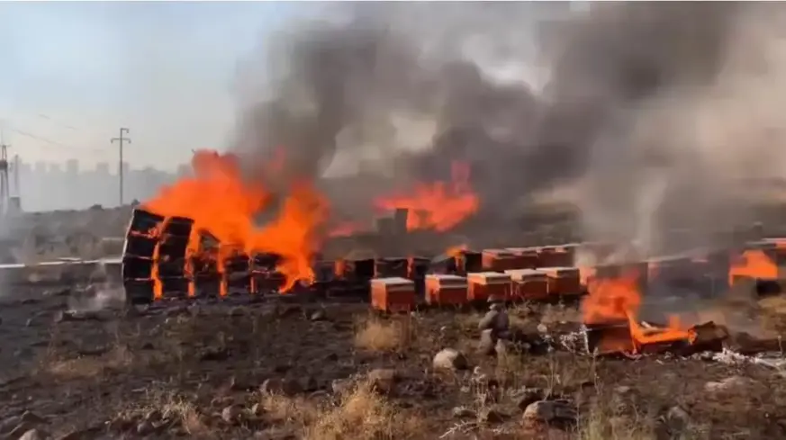 Şanlıurfa’nın Siverek ilçesinde meydana gelen arazi yangınında, yüzlerce arı kovanı içindeki arılarla birlikte yanarak kül oldu.