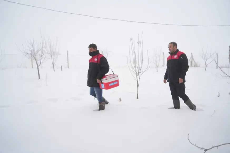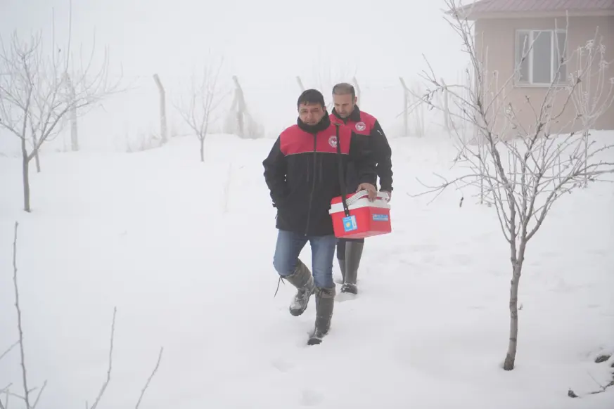 Bu kapsamda kışın zorlu şartlarına rağmen karla kaplı köylere giden veteriner hekimler, küçükbaş ve büyükbaş hayvanları aşılıyor, hayvan yetiştiricilerini bilgilendiriyor.