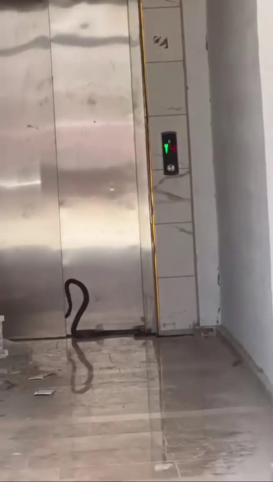 Edinilen bilgilere göre, Adıyaman merkez Altınşehir Mahallesi’nde bulunan bir binanın asansörünü kullanmak isteyen bina sakinleri asansöre girmeye çalışan yılanı fark etti.