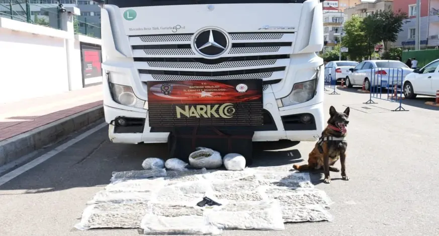 Batman İl Emniyet Müdürlüğü Narkotik Suçlarla Mücadele Şube Müdürlüğünce Batman Diyarbakır karayolu üzerinde durumundan şüphelenilen bir tır durdurularak didik didik arandı.