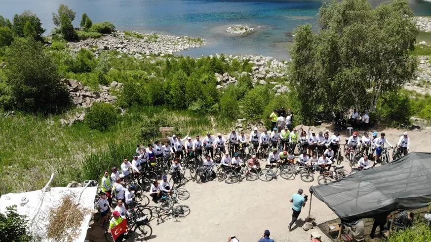 Yapılan konuşmaların ardından Nemrut Krater Gölü kenarında hatıra fotoğrafı çektiren bisikletçiler, daha sonra Bitlis Valisi Erol Karaömeroğlu'nun start vermesi ile tura başladılar.