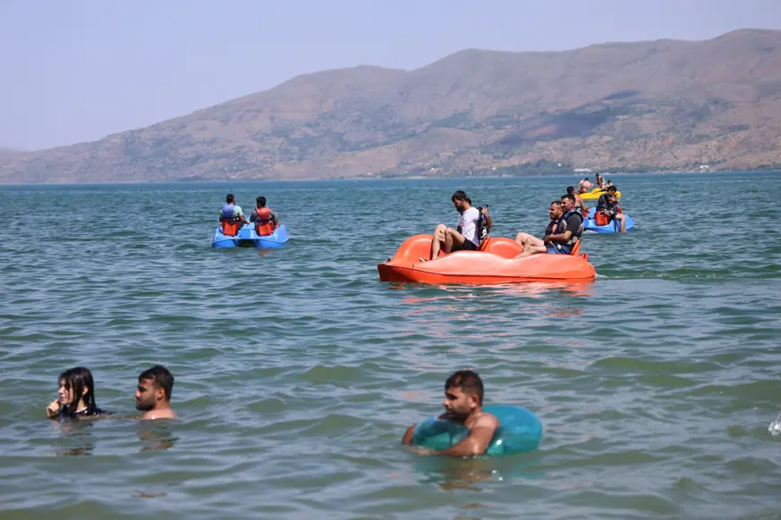 Türkiye'de derinliği ile ilk sırada yer alan, 22 kilometre uzunluğa ve 6 kilometre genişliğe sahip Hazar Gölünün kıyıları Kurban Bayramı tatili ve sıcak havaların etkisiyle tatilcilerin akınına uğradı.