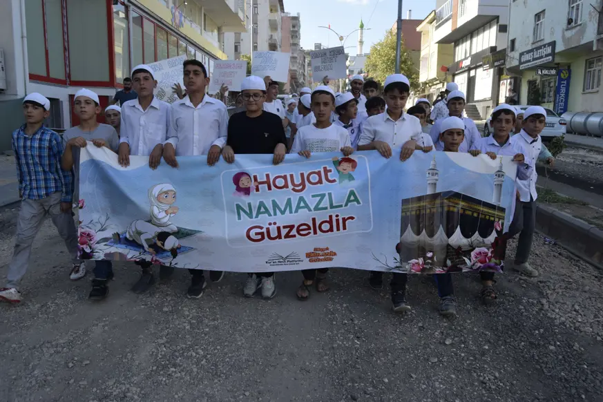 Yürüyüşte tekbirler getirildi. ‘Hayat Namazla Güzeldir’ etkinliğine yaşları 10 ile 18 arası değişen yaklaşık 200 kişi, Peygamber Sevdalıları Platformu Dicle temsilcileri ve Kur’an Nesli Platformunun gönüllü üyesi birçok vatandaş katıldı.