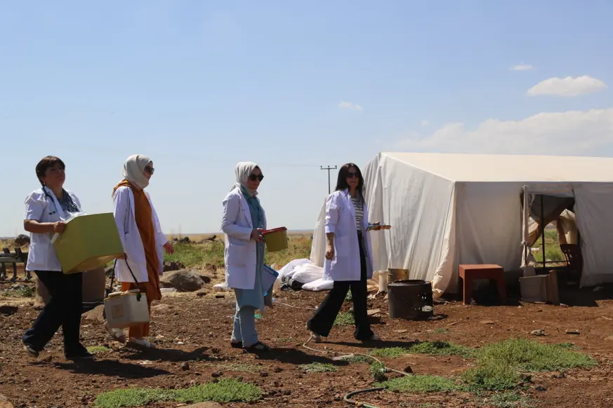 Sağlık ekipleri, Diyarbakır'ın 17 ilçesi kırsalında sunulan hizmet kapsamında, evlerinden uzakta tarlada çalışarak, yaylada hayvan otlatarak geçimini sağlayan tarım işçileri ve göçerlere ulaşmak için kilometrelerce yol katediyor.