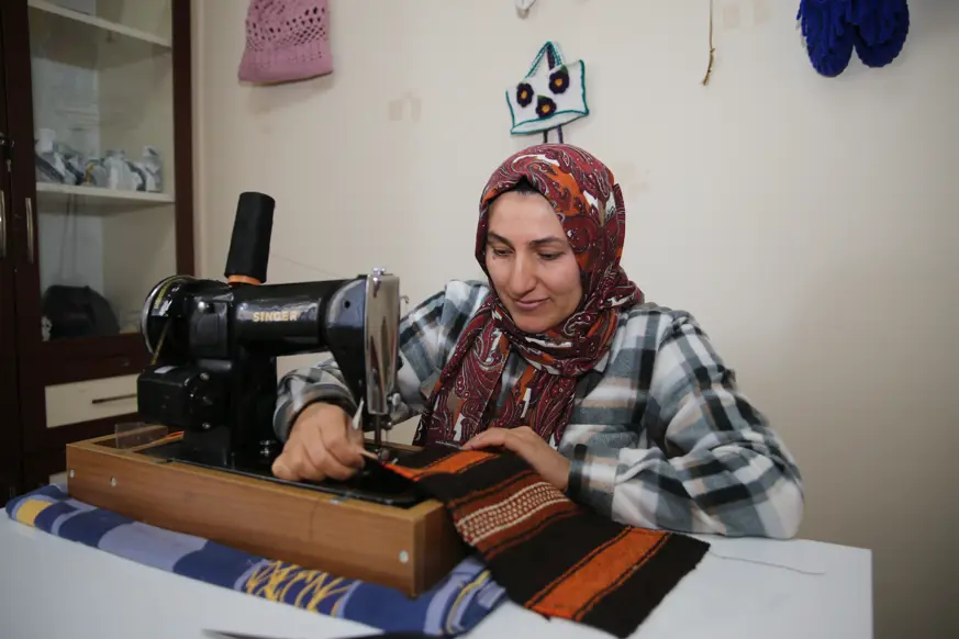 Diyarbakır'ın Çınar ilçesinde kurslara katılan kadınlar, köylerde kullanılan ve zamanla yıpranan kilimlerden geri dönüşümle yeni ürünler hazırlıyor.