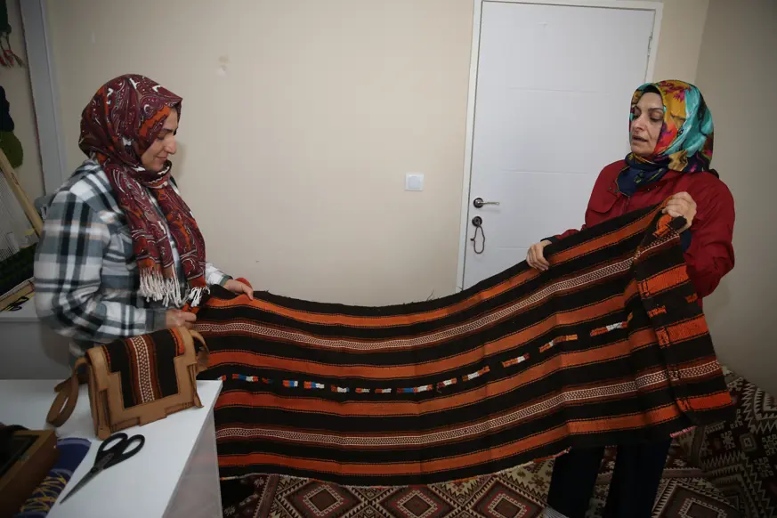 Güneydoğu Anadolu Bölgesi'nde keçi kılıyla dokunan ve zamanla eskiyen 70-80 yıllık kilimler kadın kursiyerler tarafından değerlendirilerek yeni ürünler hazırlanıyor.