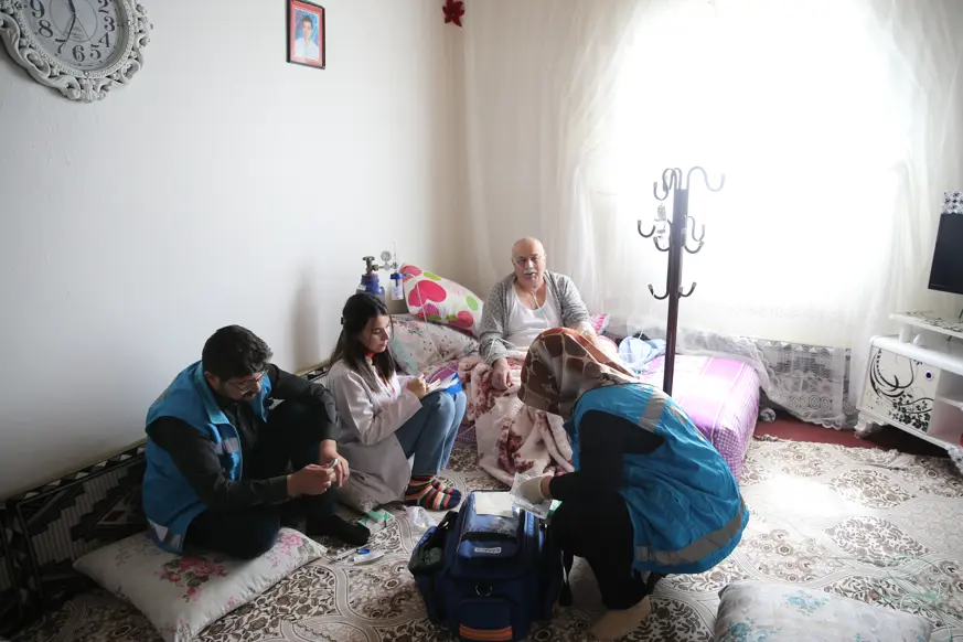 Evde Sağlık Hizmeti Birimi Sorumlusu Kenan Temel de evde sağlık hizmeti kapsamında çeşitli problemler nedeniyle sağlığını yitiren bireylere evlerinde danışmanlık, muayene, tetkik ve tedavi gibi hizmetler verdiklerini belirtti.