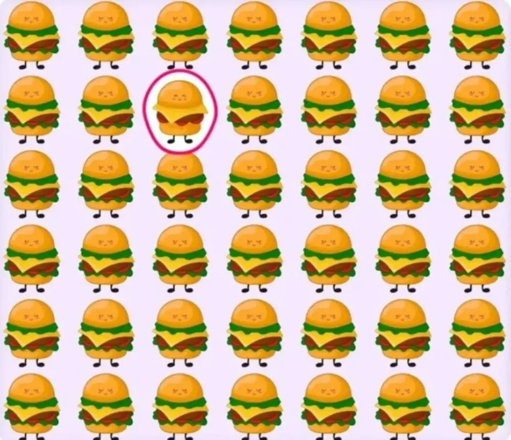 IQ’su yüksek kişiler resimlerde farklı hamburgerler bulabilirler. Resimde yalnızca bir tür burger gösterilmektedir. IQ’su yüksek bir kişi 5 saniyeden kısa sürede dört farklı hamburger bulabilir.