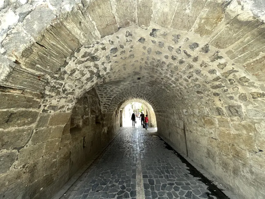 İnşa tarihi, mimarları ve ustaları belli olmayan, düz veya çapraz tonozlarla yapılan kabaltıların üstü ev olarak kullanılıyor