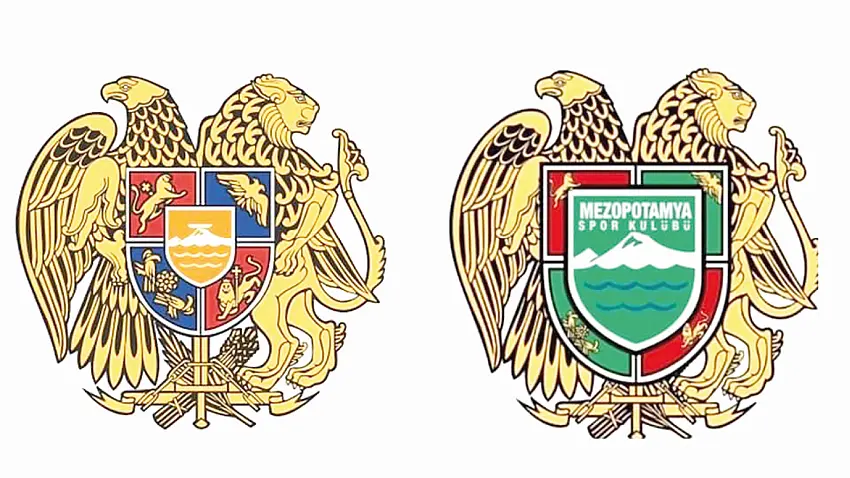Gelirsek, Mezopotamyaspor’un sembolü olan logoya.. Denir ya, tam bir fecaat.. Ki, isim üzerinden yaratılan “siyasi ve ideolojik” infialin ana sebebi de, bu logo ve içerdiği figürler.. İrdelediniz galiba.. Logo tamamen, Ermenistan Ordusu’nun resmi, logosu.. Bir iki oynama olsa da; tıpatıp benzeri..